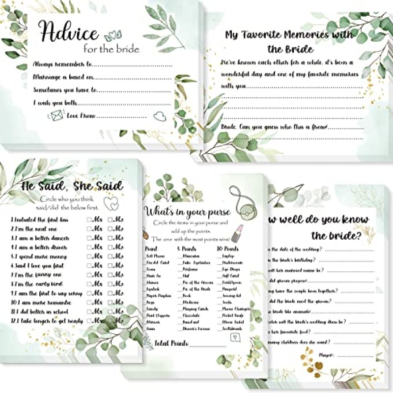 Perfect for adding a splash of fun to any stag do or hen party, this 50-piece card game set offers a variety of engaging activities designed to bring friends closer together. With five different game styles—from ‘What’s in Your Purse’ to ‘How Well Do You Know the Bride’—the set caters to all group dynamics, making icebreaking effortless no matter the crowd. The beautifully designed cards feature elegant eucalyptus leaf patterns, lending a touch of class alongside the laughs.