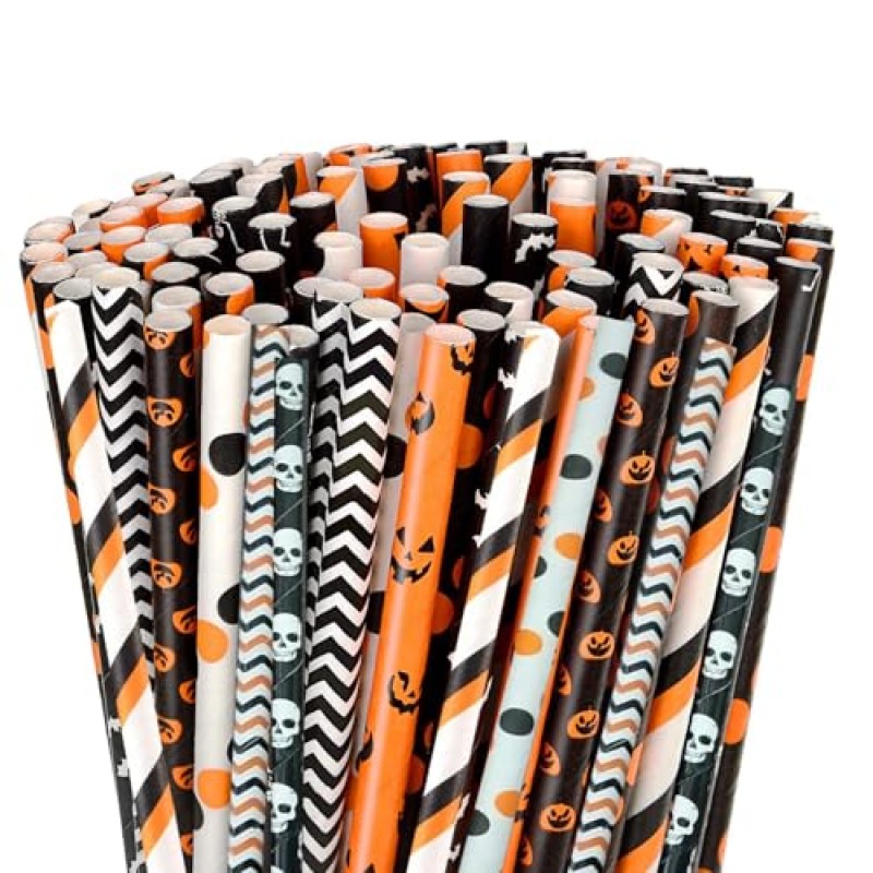- Includes 50 paper straws with black and orange Halloween designs like pumpkins, bats, spider webs, skulls and ghosts