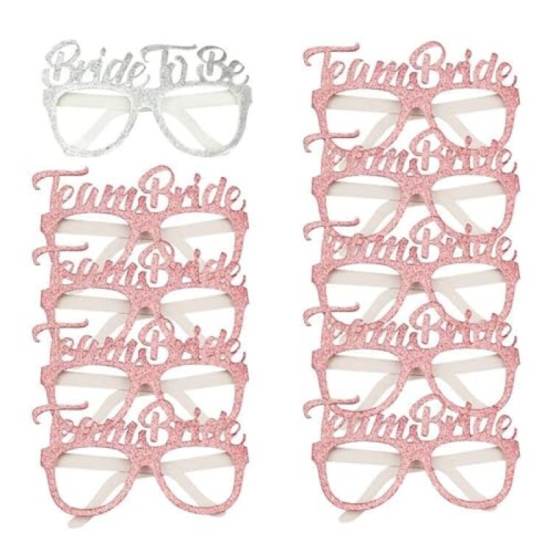 Add a sparkling touch to your stag do’s hen party celebrations with this set of rose gold 'Bride to Be' glasses. Designed to bring the group together, this pack features one 'Bride to Be' pair and nine 'Team Bride' glasses, perfect for a lively night of fun and memorable photos. Crafted from high-quality, glitter-coated card stock, these glasses are both durable and eye-catching without the mess of glitter fallout. Their bright shimmer stands out beautifully in photos, making them an ideal prop for capturing those cheeky moments during your celebrations.